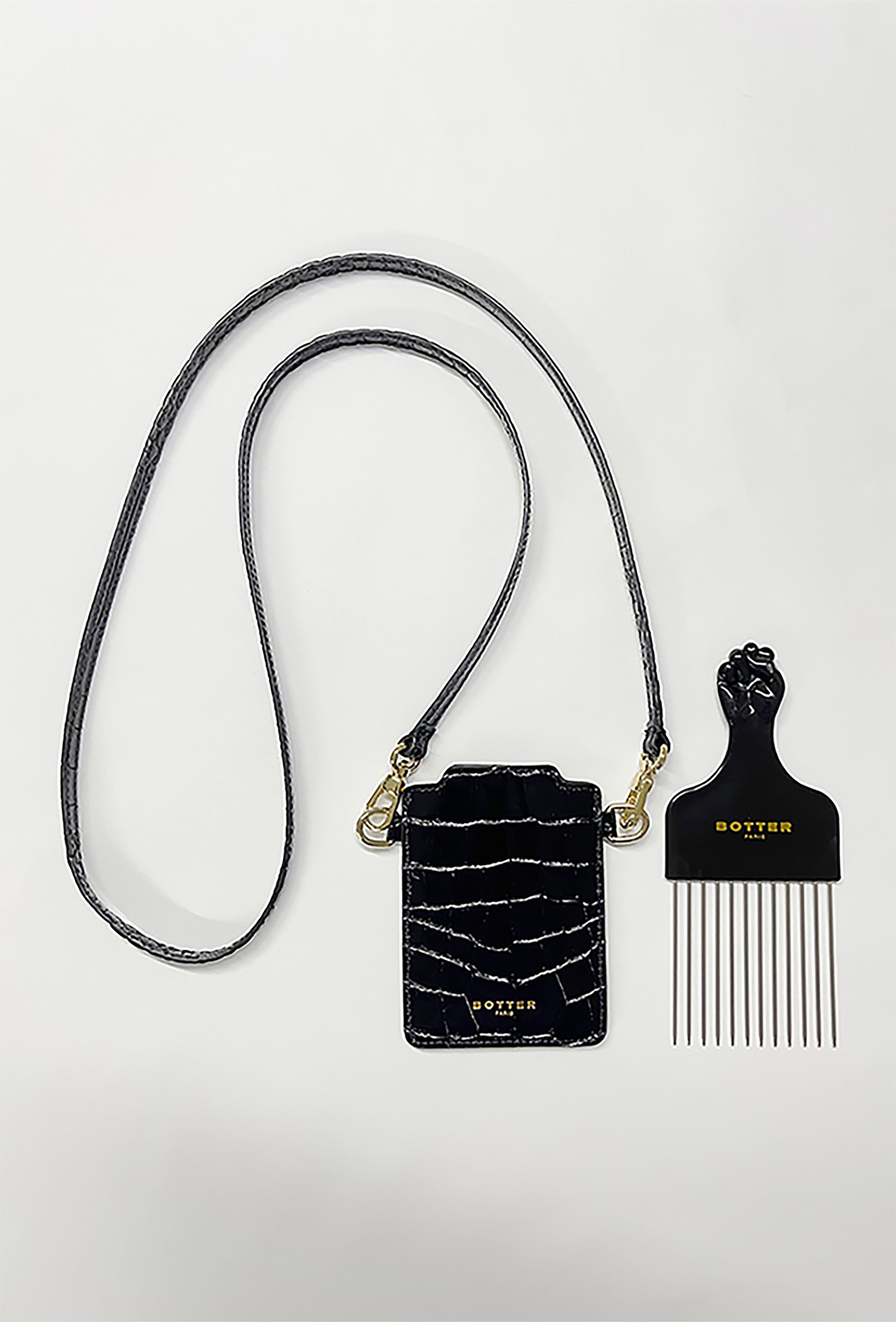 Afro comb with croc print leather bag